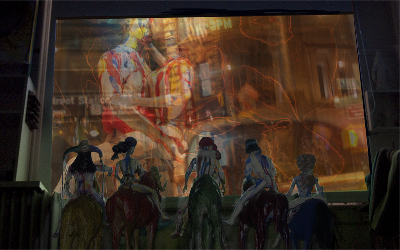 On our way to the Flatbush Farm restaurant from the studio, we pass a true monstrosity (an alien space ship? some random space junk put here by the Chinese? these being guesses made on my Facebook post) looming at the intersection of Flatbush and Atlantic Avenues, one of most highly trafficked corners in the universe, obviously the best place for a new basketball stadium currently owned by the Russian billionaire Mikhail Prokhorov who wheeled and dealed with Bruce Ratner to buy this wonderful thing, the only thing left after the meltdown of the huge, ill-planned and ill-fated Atlantic Yards project, besides all the displaced people and destroyed neighborhoods, that is.
